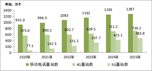 截至2025年底,全国移动电话基站总数达1287万个,比上年末净增22.7万个。其中,4G基站为719.2万个,比上年末净增8万个。5G基站为483.8万个,比上年末净增58.8万个,5G基站占移动电话基站总数达37.6%,占比较上年末提升4个百分点。其中,具备5G RedCap接入能力的基站数达206.4万个,占5G基站的42.7%。